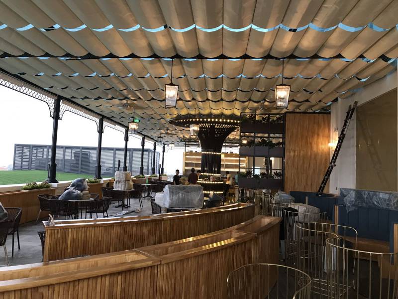 Rèm trần xếp ly tự động che nắng mái kính quán Cafe
