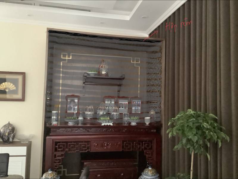 Anh nói rằng, anh muốn làm rèm che ban thờ, màu sắc giống màu khung CNC bao quanh cho đồng bộ và nhắn Chenang.vn chọn cho anh loại phù hợp.