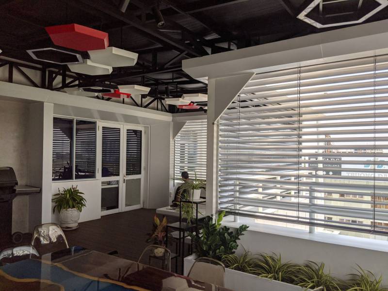 Chúng ta có thể bị thu hút rèm sáo nhôm tự động ngoài trời ở bất kỳ tòa nhà, biệt thự, và các khu vực shophouse cao cấp ... bởi vẻ đẹp sang trọng, khỏe khoắn và tiện lợi của nó. Ngoài ra, ưu điểm rất lớn của sáo nhôm ngoài trời là phản xạ lại hầu hết nhiệt lượng chiếu vào nó, giữ cho không gian sau nó có nhiệt độ lý tưởng và không phải tốn kém năng lượng sưởi ấm hoặc làm mát. Các lá nhôm có thể tự động có thể điều chỉnh góc từ 0 - 90 độ giúp việc kiểm soát ánh sáng, tầm nhìn một cách tiện lợi là nhẹ nhàng.