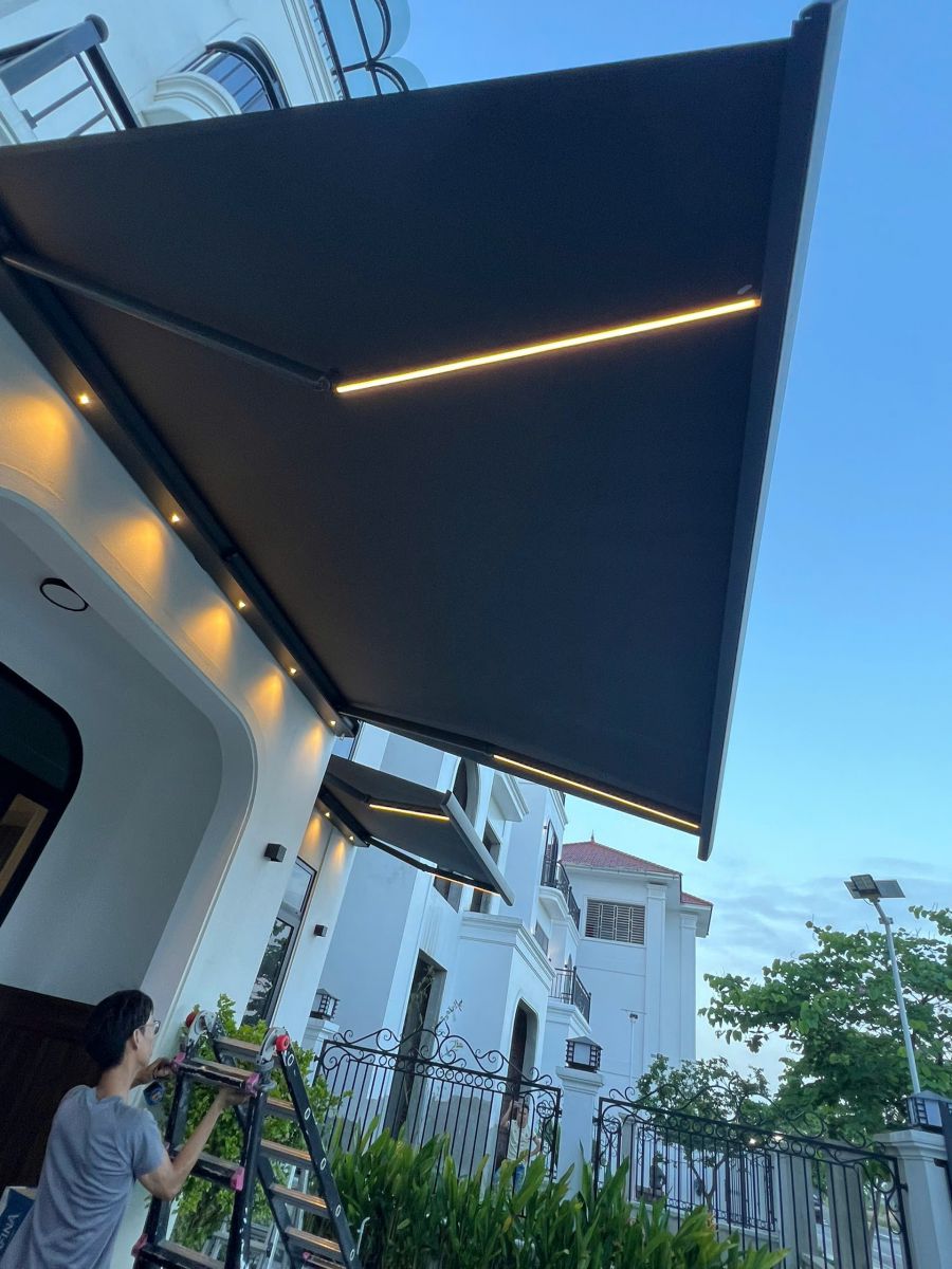 Hệ mái hiên tự động cao cấp tiêu chuẩn Châu Âu che nắng sân vườn tại biệt thự nhà khách ở Thành phố Thanh Hóa