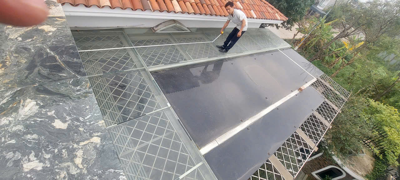 Hệ rèm trần phẳng tự động cao cấp Skylight che nắng trên mái kính, trần kính tại Vinhome Riverside Long Biên, Hà Nội