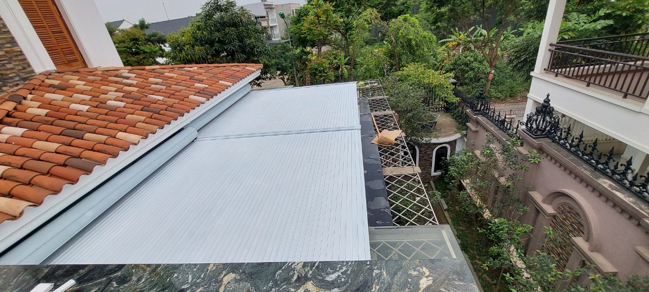 Hệ mái hiên tự động cao cấp nhập khẩu tiêu chuẩn Châu Âu tại Biệt thự Vinhome Riversides Long Biên, Hà Nội