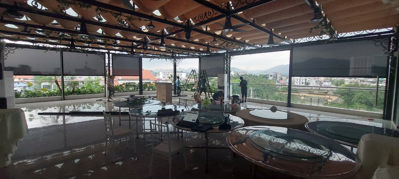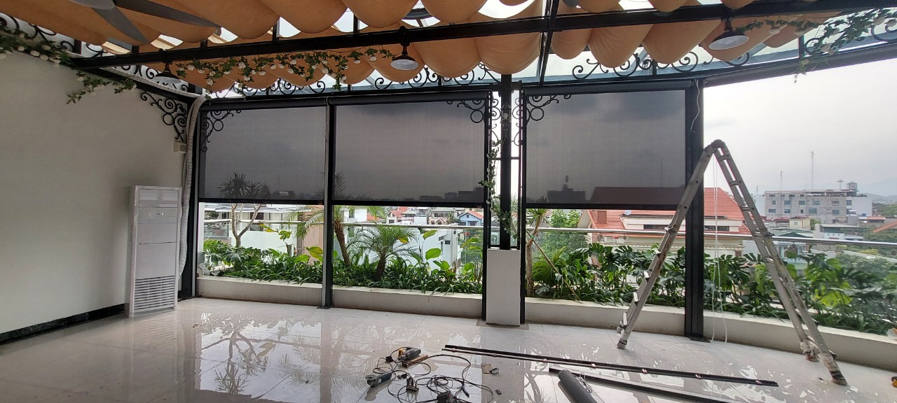 Hệ rèm cuốn tự động ngoài trời Zipper Blinds che nắng, mưa gió tại Vinhome Marina Hải Phòng