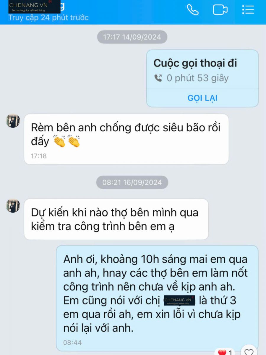 CHENANG.VN - nơi mỗi công trình không chỉ là sản phẩm, mà còn là câu chuyện của niềm tin, trách nhiệm và những con người tận tâm với nghề. 1. Cuộc gọi nhỡ kéo dài - và lời nhắn đầy quyết tâm Giữa trưa