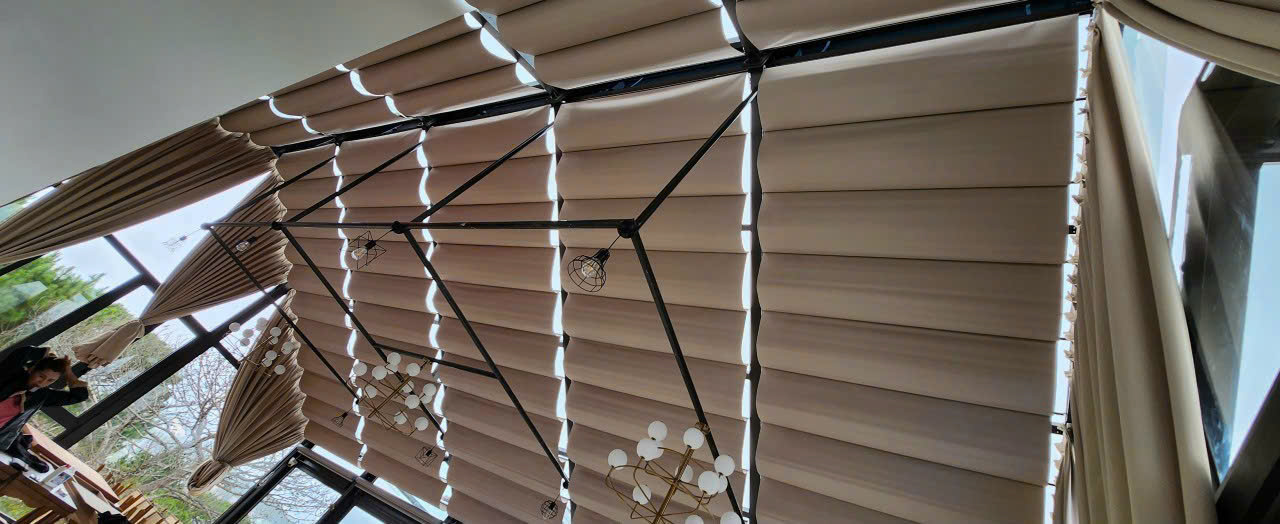 Hệ rèm trần xếp ly tự động chéo che nắng mái kính nhà vườn tại Ba Vì, Hà Nội – Một dấu ấn, một kỷ niệm không thể nào quên –
