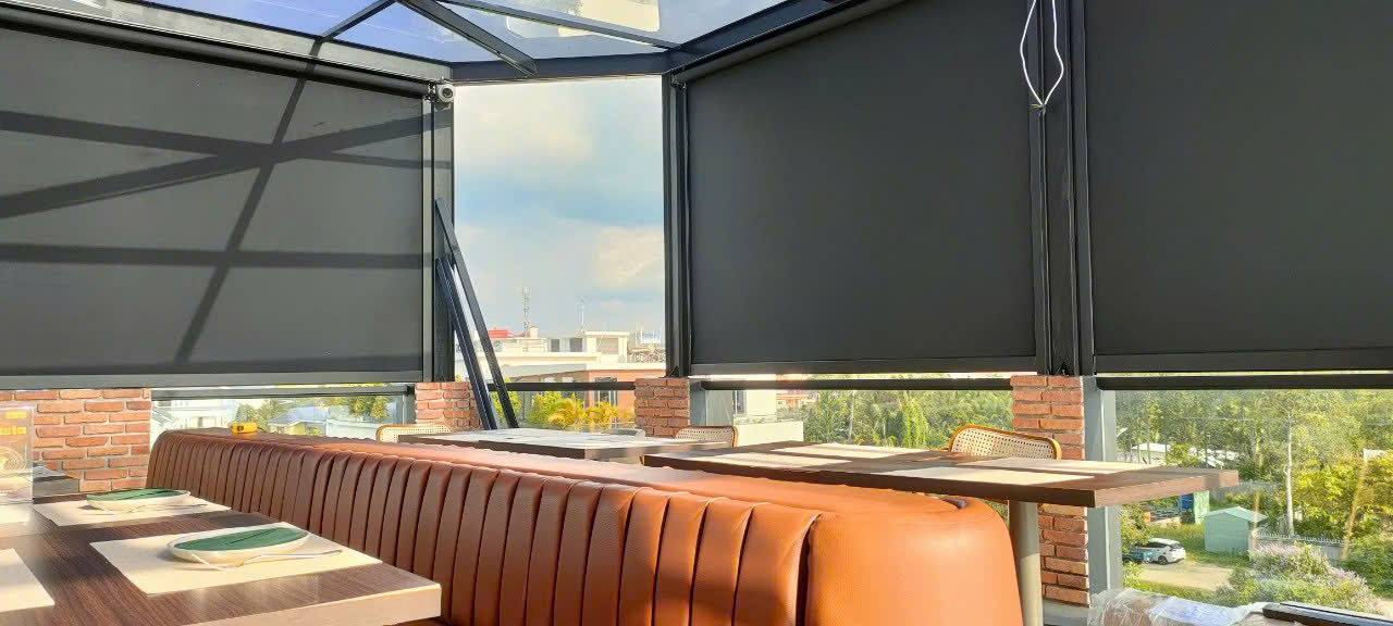 Hệ rèm cuốn tự động Zipper che nắng, mưa gió tại Tổ hợp tiệc cưới, sự kiện Dương Gia Palace