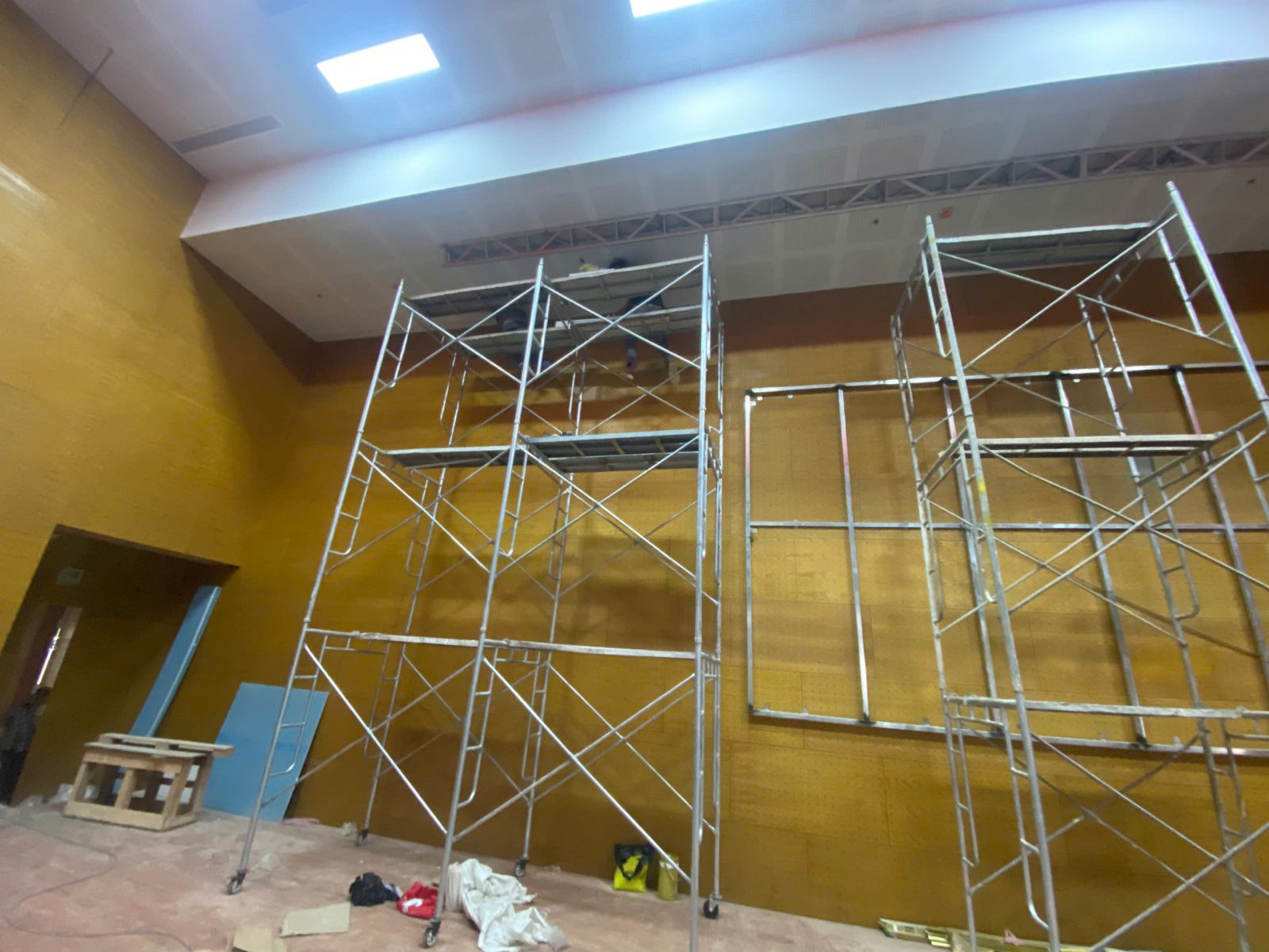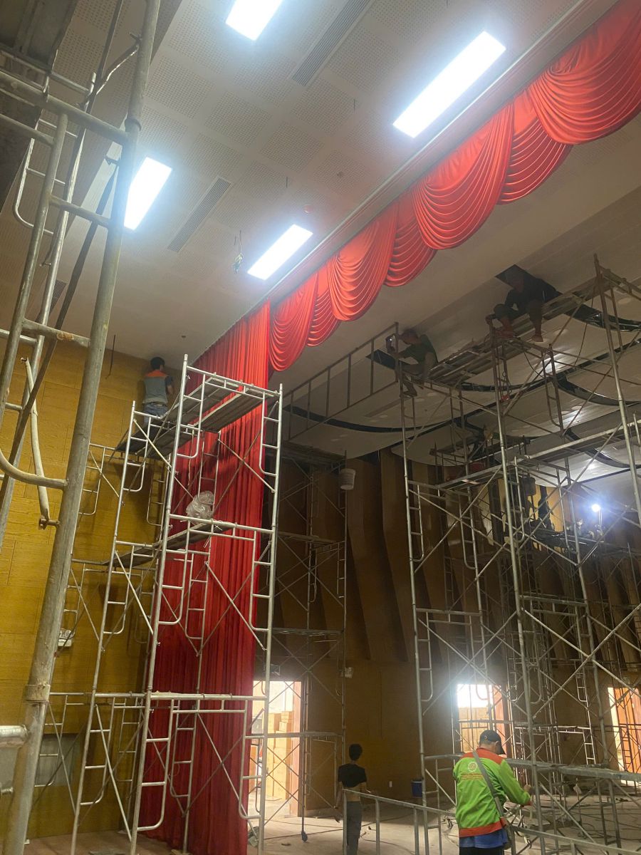 Đặc tính của những bộ rèm sân khấu thường khá cao từ 5 -7m nên phải sử dụng giàn giáo để thi công