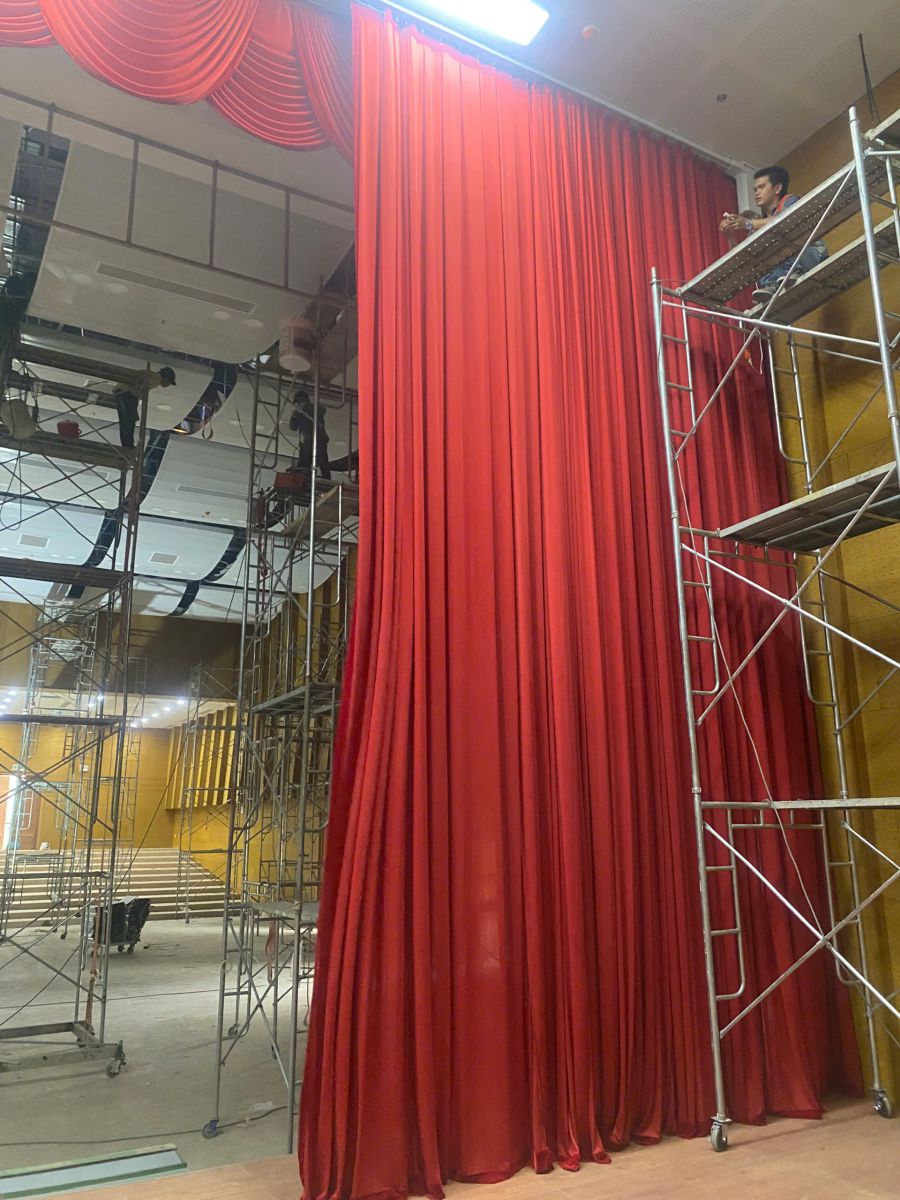 Việc thi lắp đặt rèm sân khấu được tính toán cẩn thận chỉn chu phù hợp với kích thước sân khẩu